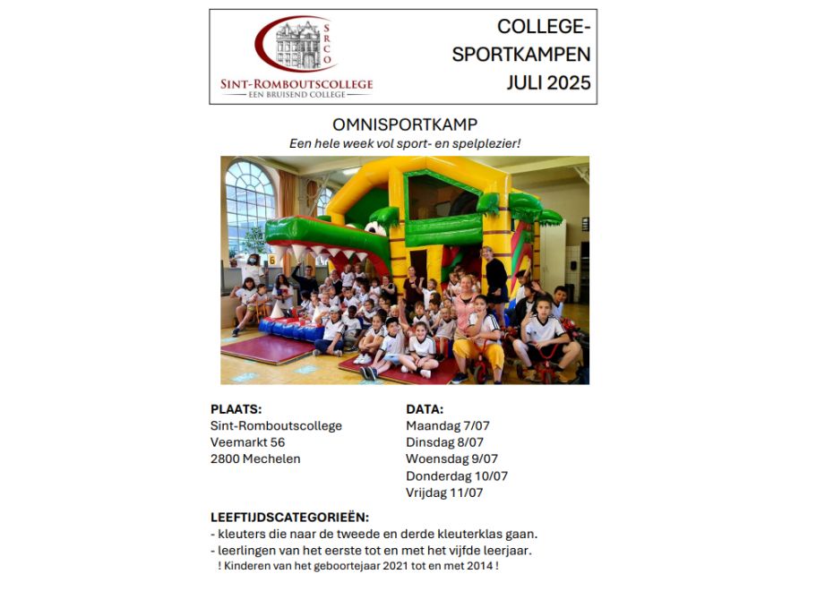 Dit sportkamp is voor: - kleuters die naar de tweede en derde kleuterklas gaan. - leerlingen van het eerste tot en met het vijfde leerjaar. ! Kinderen van het geboortejaar 2022 tot en met 2015 !